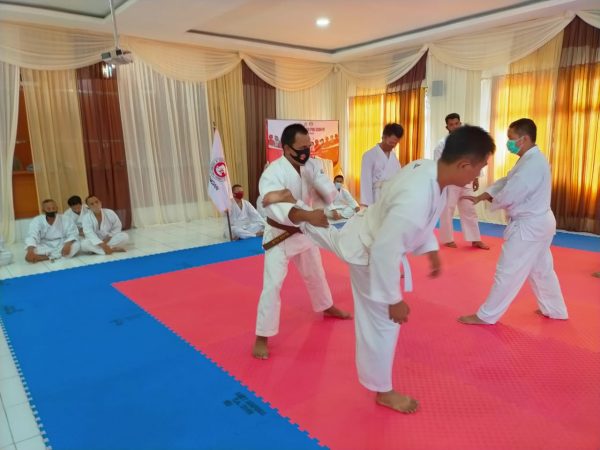 SuarIndonesia – Ketua Persatuan Judo Seluruh Indonesia (PJSI) kabupaten Balangan, Kompol Joko Sudarmadi awasi latihan atletnya di Aula Pesat Gatra Polres Balangan, Jumat (4/9/2020).