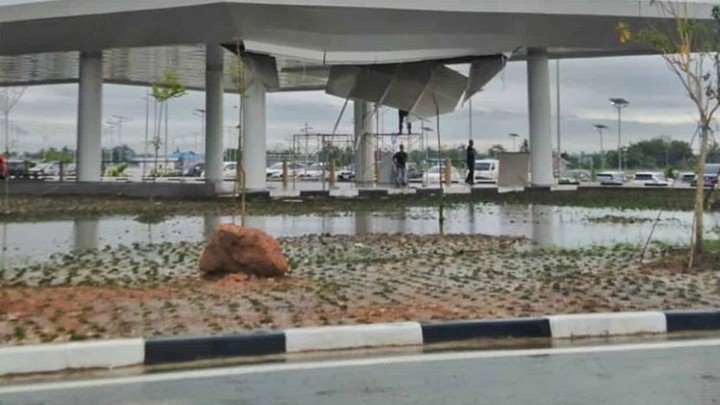 Namun yang mengagetkan, bagian plafon terminal baru Bandara Syamsudin Noor Banjarmasin jebol.