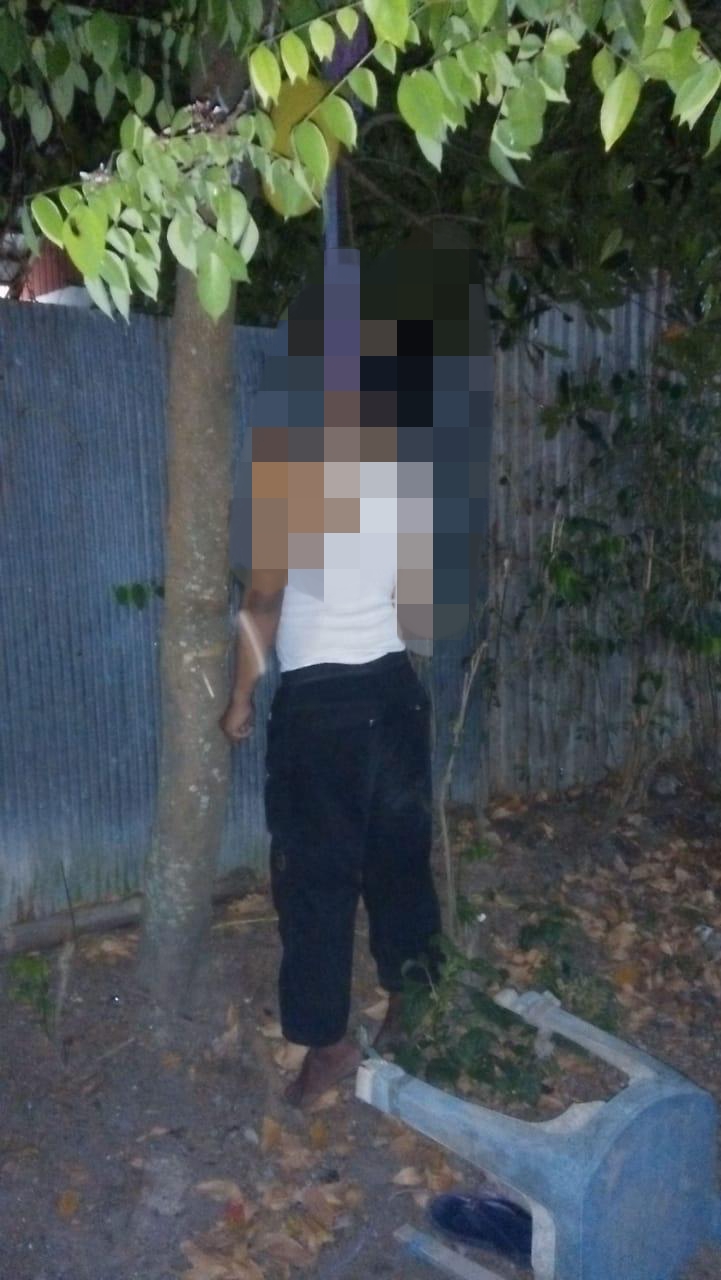 Korban warga Jalan Malkon Temon Raya Gang Ismail Banjarmasin Utara, melakukan hal itu dengan menggunakan selembar kain yang diikatkan pada cabang pohon nangka, oersis di depan rumah kontrakannya.