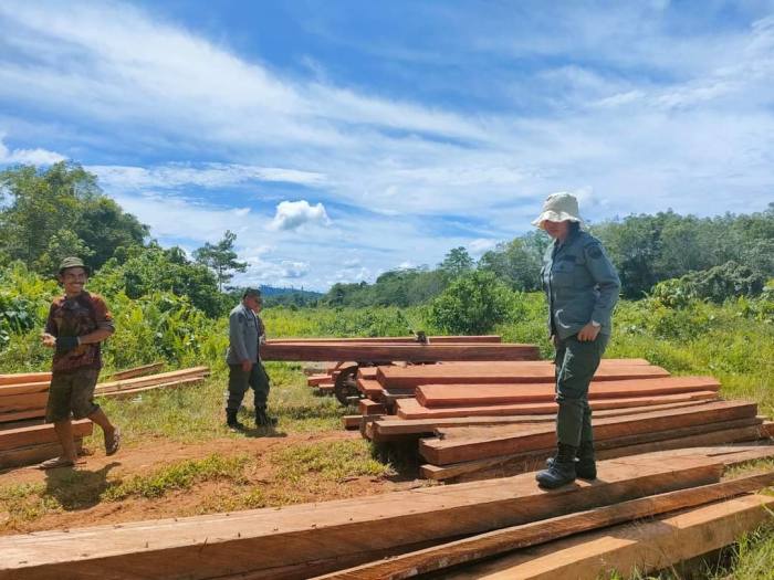 Total sebanyak 71 potong kayu jenis rimba campuran berhasil diamankan tim dalam kegiatan tersebut.