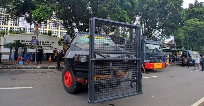 Kendaraan taktis polisi disiagakan di depan KPU (Foto: Jefrie Nandy Satria/detikcom)