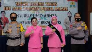 Pada acara pengukuhani, dilakukan pelepasan dan pemasangan selempang Ibu Asuh Polwan Polda Kalsel serta penyerahan lencana Esthi Bhakti Warapsari, penandatanganan berita acara serah terima tugas dan penyerahan cinderamata. (ZI)