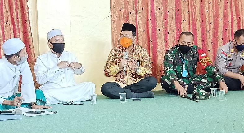 Tim Gugus Tugas (Dandim 1006 Mtp, Sekda, Kadinkes, Kabag Ops Polres Banjar, Kasatpol PP, Kakan Kemenag Banjar) ke Ponpes Darussalam terkait SE bertemu Pimpinan Yayasan dan Pimpinan Ponpes Darussalam.(Foto/Ist)