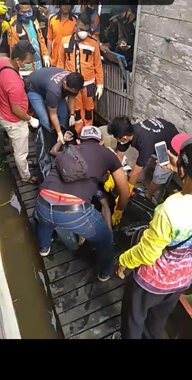 Hairiyah langsung meminta pertolongan kepada Jali Rahman (51), yaitu tertangganya sert memanggil warga sekitar untuk menarik mayat tersebut ke pinggir sungai dan melaporkan kejadian ini ke Mapolsek Sungai Tabuk.