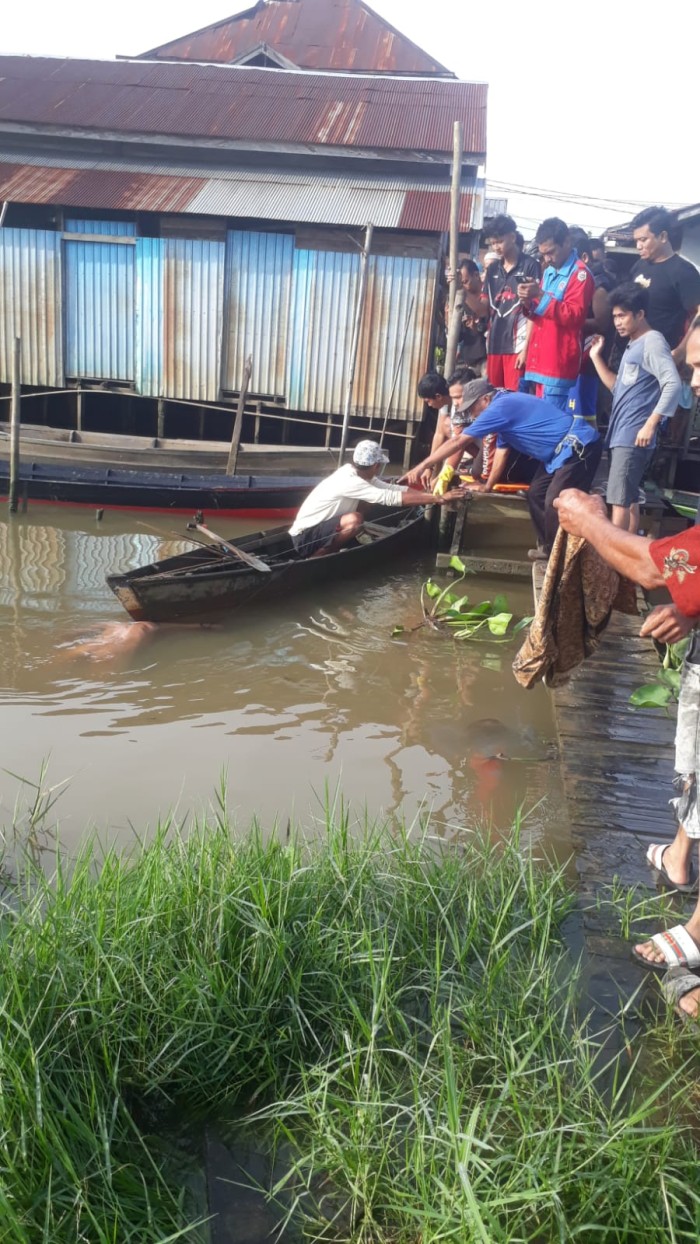 Warga yang menemukan langsung mengikat kakinya agar tak jaur larut hingga datangnya anggota Satuan Polisi Perairan Dan Udara (Satpolairud) Polresta Banjarmasin.
