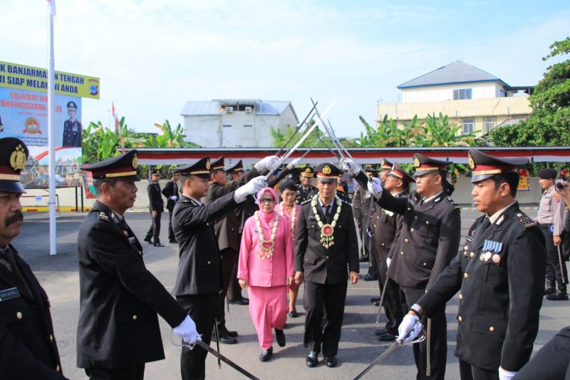 Suarindonesia – Jajaran Polresta Banjarmasin melaksanakan upacara pada puncak HUT ke 73 Bhayangkara di Jalan Meratus, tepatnya halaman Mapolsekta Banjarmasin Tengah, Rabu (10/7).