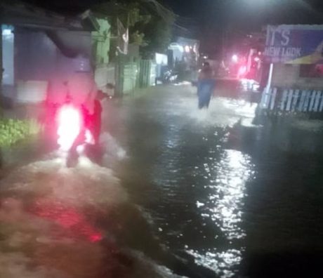 Air meluber ke jalan biasanya disebabkan oleh curah hujan atau sungai lagi tinggi yang melebihi kapasitas drainase. Bahkan, saluran air tersumbat oleh sampah atau material.