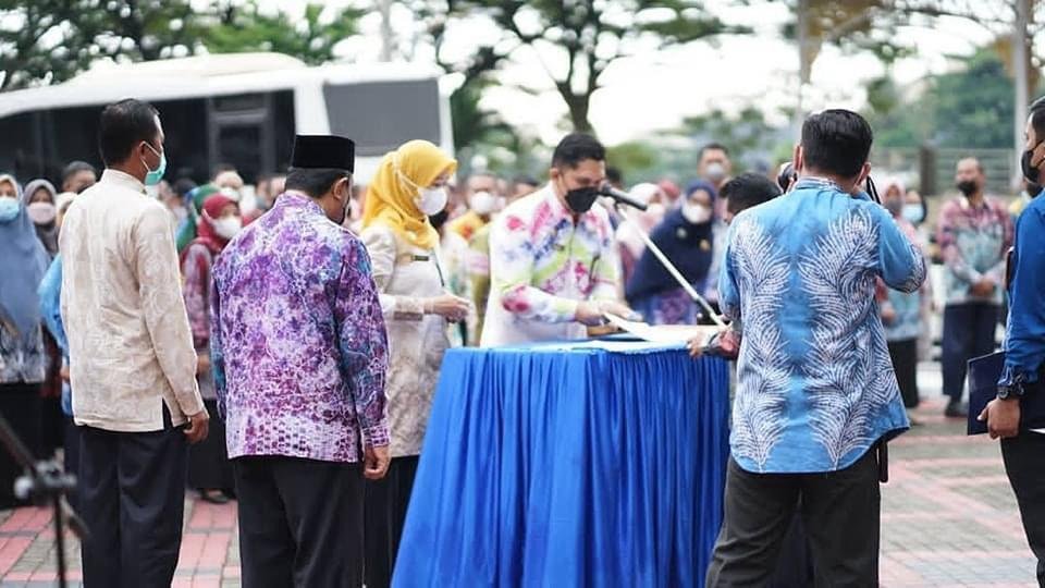 SuarIndonesia — Pemerintah Kota Banjarmasin menggelar pelantikan penyetaraan dan pengambilan sumpah jabatan di lingkungan Pemerintah Kota Banjarmasin yang bertempat di Halaman Balaikota Banjarmasin, Jumat (31/12/2021).