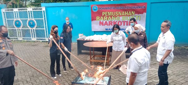 Pemusnahan dihadiri Kepala BNN Kota Banjarmaain, Kombes Pol Sisman Adi Pranoto SIk MHum, AKBP Pipit Subiyanto SIk MH, Kejaksaan Negeri (Kejari), Balai Pomn, dan LKBH Banjarmasin