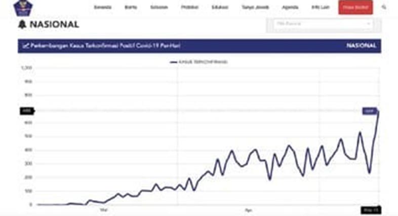 Tangkapan layar grafik lonjakan kasus positif di Indonesia hingga 13 Mei 2020.(Dok. covid19.go.id)