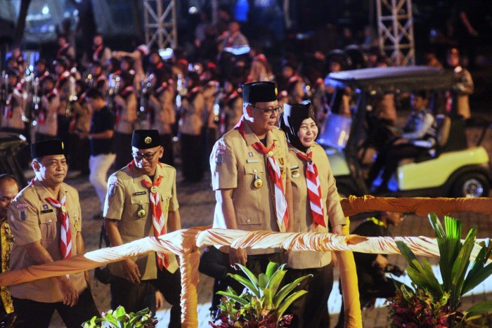 Parade peserta ditutup kontingen tuan rumah, Provinsi Kalsel di bawah binaan Gubernur Kalsel, ka Sahbirin Noor dan Ketua Kwarda Pramuka Kalsel ka Hj Raudatul Jannah Sahbirin Noor.