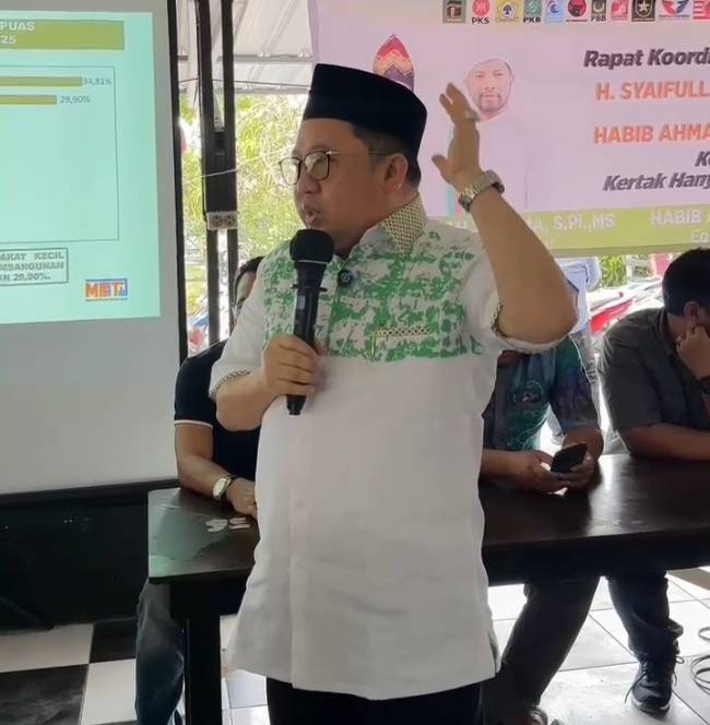 ‘’Kalau saya jadi bupati, saya akan menggratiskan BPJS (untuk warga) berkartu keluarga Kabupaten Banjar. Kalau ada yang meninggal dunia mendadak atau sakit maka akan diberikan santunan Rp 40 juta,’’ ucap Tamliha pada acara konsolidasi lintas partai pengusung pasangan calon Syaifullah Tamliha-Habib Ahmad Bahasyim di Kecamatan Kertak Hanyar, Kabupaten Banjar, pada Sabtu (28/9/2024).