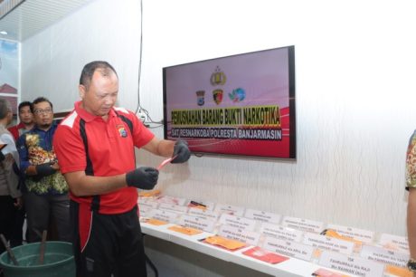 Semua dilakukan Jajaran Polresta Banjarmasin dipimpin Waka Polresta, AKBP Pipit Subiyanto didampangi Kasat Reserse Narkoba, Kompol Mars Suryo Kartika berlangsung di ruang lobby Satuan Reserse Narkoba disaksikan 25 tersangka selaku pemilik barang