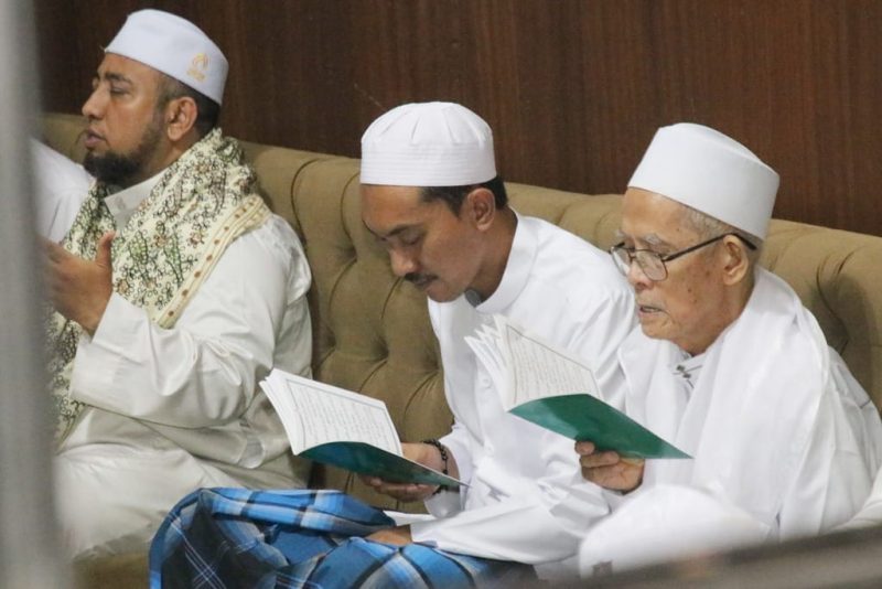 Jemaah larut dalam kekhusyuan saat dzikir nasyid berkumandang, dibawakan rombongan Ar Raudah Sekumpul Martapura pimpinan Guru Sya’dudin. (*/HM) )
