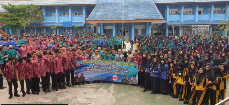 Dalam sosialisasid isampaikan Kanit Bintibmas Sat Binmas Polresta Banjarmasin Iptu Moh.Irkamni kepada 1.200 siswa siswi di SMA Negeri 2 Banjarmasin.