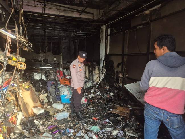 “Menurut keterangan saksi, saat itu sedang tidur di lantai satu ruko, kemudian mendengar teriakan warga yang memberitahukan adanya api, lalu saat dicek api sudah membakar bagian lantai dasar bangunan,” ujarnya.