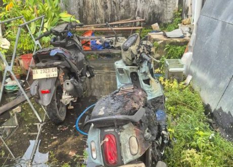 “Akibat kejadian tersebut, dinding dan plafon lantai dasar ruko terbakar, tiga unit sepeda motor ikut hangus serta barang dagangan berupa box styrofoam dan para pegawai pun mencoba membuat tangga darurat dengan cara menyusun bangku untuk bisa menyelamatkan diri,” jelasnya.