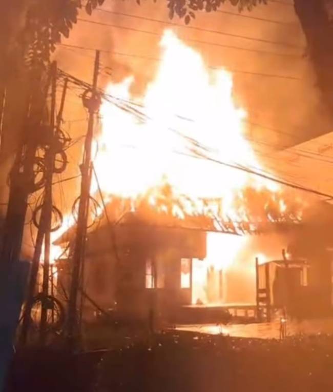 Suarindonesia – Sebuah rumah kosong yang sering dijadikan berteduh tempat anak-anak yang kerap melakoni pekerjaan menjadi manusia silver, di Jalan A Yani Km 2,5 Samping Kantor Bea Cukai Kanwil Kalbagsel Banjarmasin Tengah, membara (terbakar), Rabu (5/3/2025) subuh