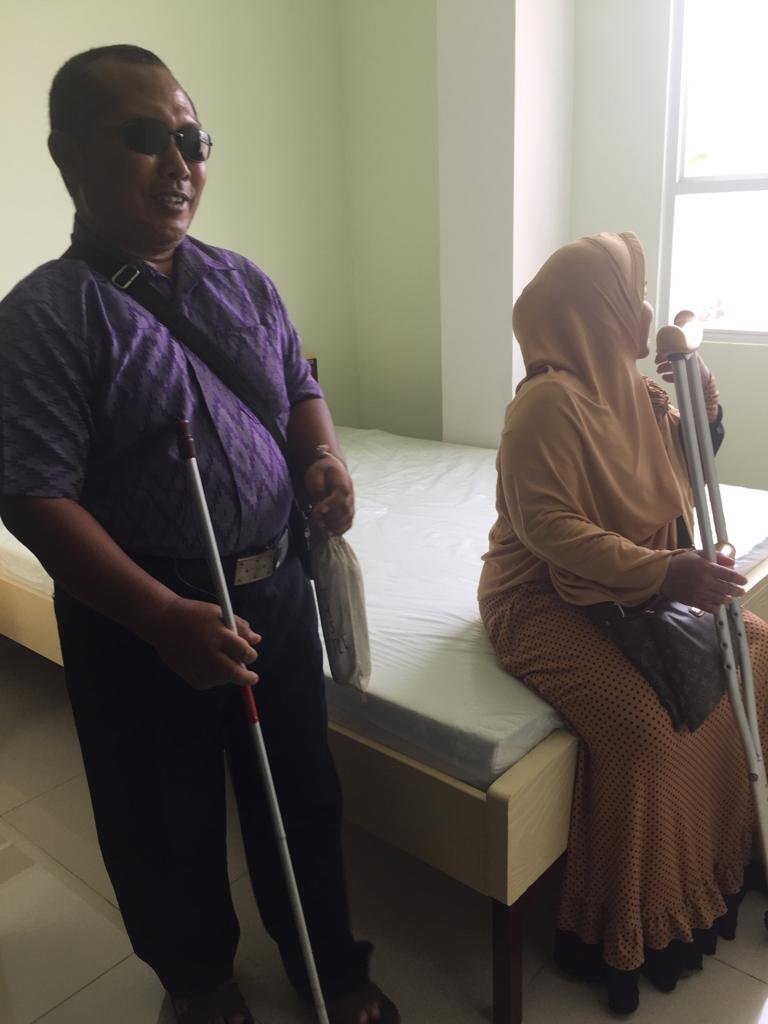 Selamat, salah satu warga yang disfabel saat berada di Rusunawa sangat bekeinginan tinggal di Rusunawa yang semuanya fasilitas cukup lengkap. Bahkan dia sudah mengenali kalau ruangannya cukup representatif dan layak untuk tinggal sepertinya.(SU)