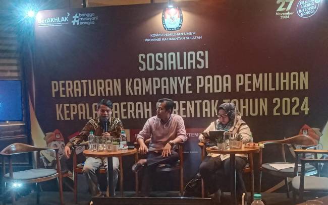 Komisioner KPU Provinsi Kalsel, M Fahmi Failasofa mengungkapkan tujuan sosialisasi tersebut untuk menyamakan persepsi pemahaman yang sama mengenai tata cara atau peraturan kampanye Pilkada 2024.