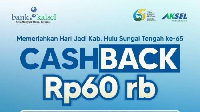 SuarIndonesia – Guna menyambut Harjadi Bank Kalsel ke-61 Bank Kalsel, kini disediakan cashback 61 persen dan 61 voucher belanja senilai Rp500 ribu.’