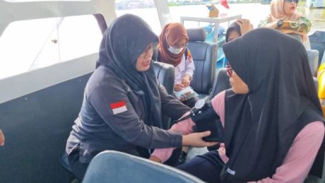 Pengobatan gratis ada sekitar 70 masyarakat , melaksanakan giat di Poliklinik Terapung yaitu, memberikan layanan kesehatan awal, sekaligus memberikan himbauan penting tentang menjaga lingkungan yang sehat guna mencegah berbagai penyakit, serta mendapatkan pemeriksaan kesehatan gratis.