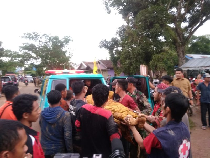 Jasad yang belum ditemukan atas nama Dumat, Askom, dan Aau. Waktu sudah menjelang magrib, tim relawan gabungan masih berada di lokasi longsor. Bahkan nampak excavator didatangkan guna memudahkan pencarian. (RW)