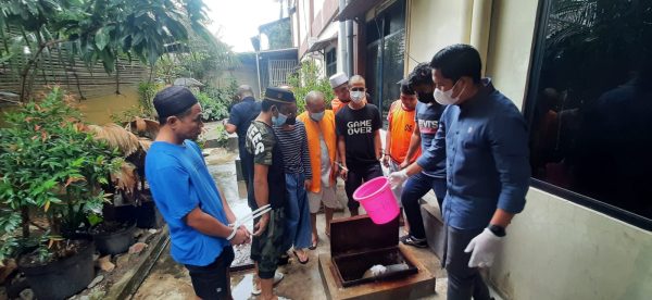 Bukan berhenti sampai di situ, cairan larutan tersebut pun langsung dibuang ke saluran pembuangan limbah cair Gedung Dit Tahti Polda Kalsel sambil masih disaksikan para stakeholder.