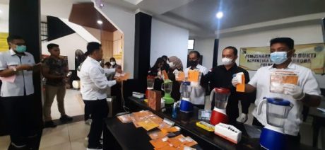 Sabu dan ekstasi barang bukti hasil pengungkapan kejahatan peredaran gelap dan atau penyalahgunaan narkoba itu dicampur dengan air lalu diblender.
