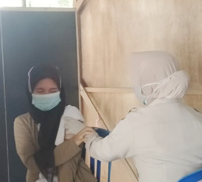 Nadia, warga Alalak Utara Banjarmasin Utara, tetap beranikan diri dan akhirnya ketika jarum suntik masuk di bagian lengan tangan dan selesai, baru lega.