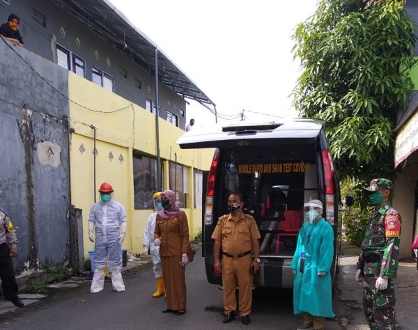 Dari petugas Biddokes Polda menurunkan Mobile Rapid and Swab Test Covid 19 dan beberapa petugasnya ikut melakukan tes.