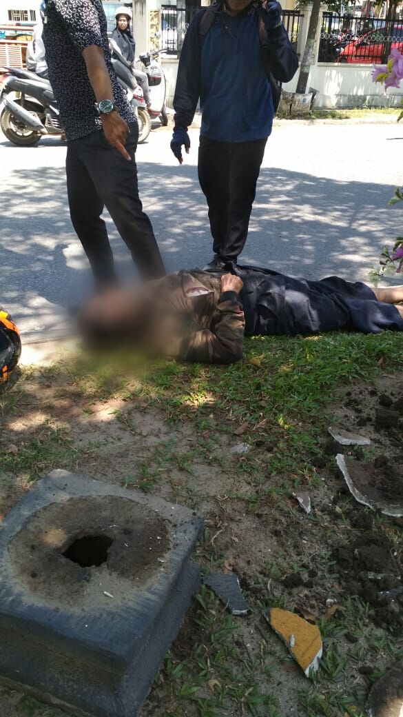 Saat melintas di Tempat Kejadian Perkara (TKP) lanjutnya, sepeda motor dalam kondisi sudah terhatuh hingga menabrak pot bunga.