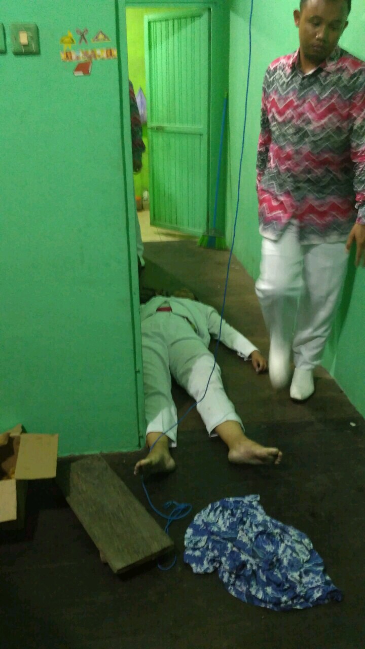 Saat itu sepeda motor korban masih ada di dekat kamarnya, dan iapun langsung menuju ke kamar korban.“Saat membuka kamar melihat korban sudah tergeletak.“ ujarnya.