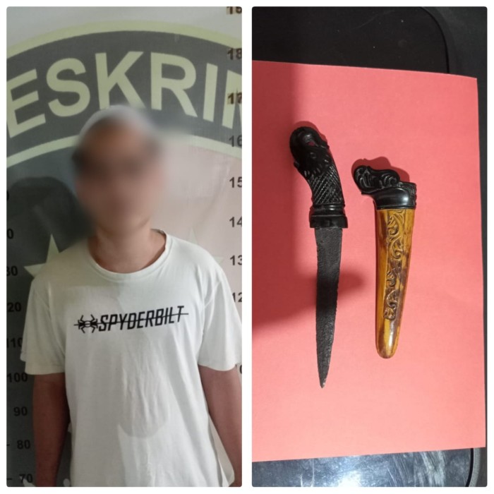 Tersangka diketahui warga Jalan Kelayan A Gang H.M Syifa RT. 21 RW. 07 Banjarmasin Selatan, diamankan dengan barang bukti senjata taajam tanpa surat izin.