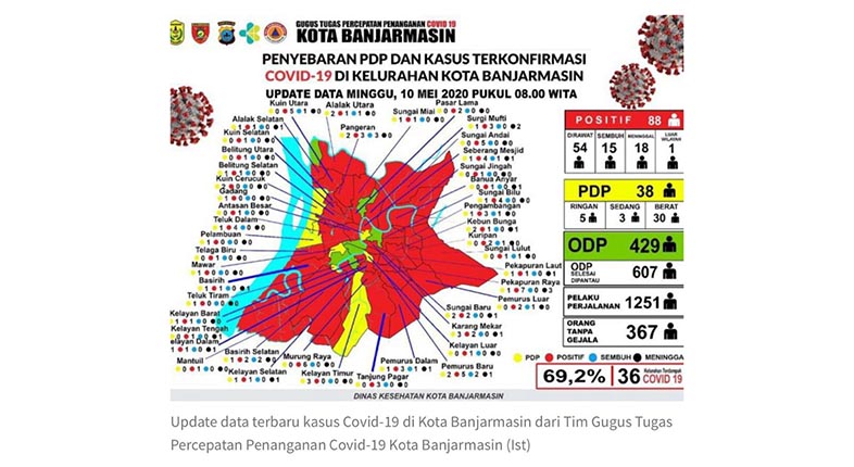 Hal ini diungkapkan Kepala Dinas Kesehatan Banjarmasin Machli Riyadi yang juga menjabat sebagai Juru Bicara Gugus Tugas Percepatan Penanganan Covid-19 Banjarmasin, Minggu (10/05/2020) siang.