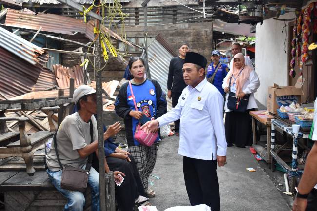 Bantuan langsung diserahkan Wakil Wali Kota Banjarmasin, H Arifin Noor didampingi plt Kabag Kesra, Juli Khair dan juga perwakilan Dinas Sosial Banjarmasin beserta Lurah Pasar Lama.