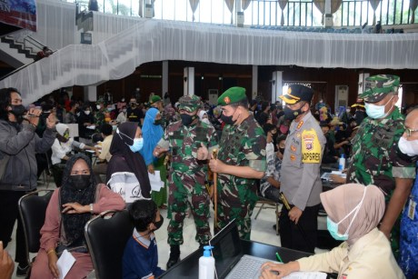 Dan Kamis (17/2/2022) Danrem meninjau langsung pelaksanaan serbuan vaksinasi di Gedung Sultan Suriansyah Banjarmasin Utara