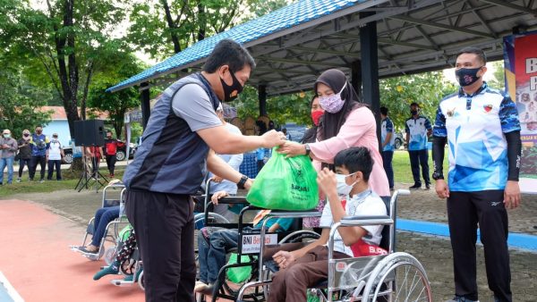 Pada kegiatan -diserahan bantuan berupa 67 buah kursi roda kepada anak disabilitas dan 100 paket sembako guna meringankan beban dimasa pandemi Covid-19.