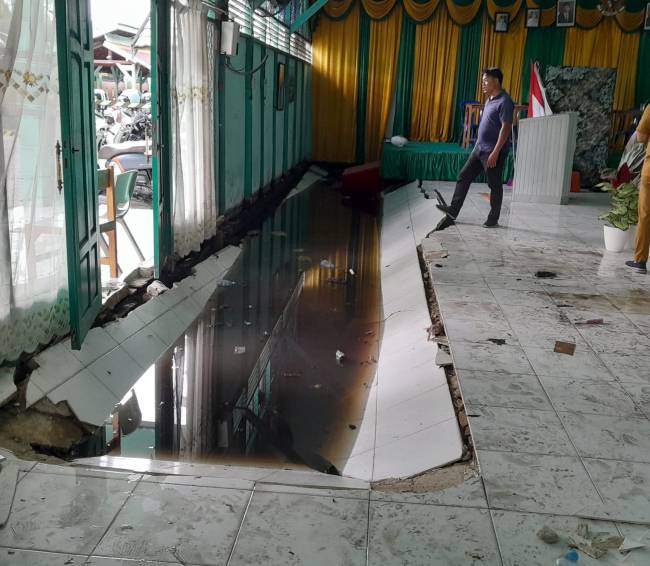 “Kita mendapatkan laporan bahwa lantai bangunan aula ini amblas pada saat adanya kegiatan sosialisasi tata tertib,” jelas Kanit.