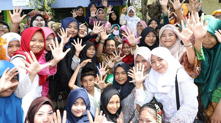 Jabat tangan hingga foto bersama langsung mereka lakukan sejak H Hermansyah memasuki halaman sekolah tersebut.