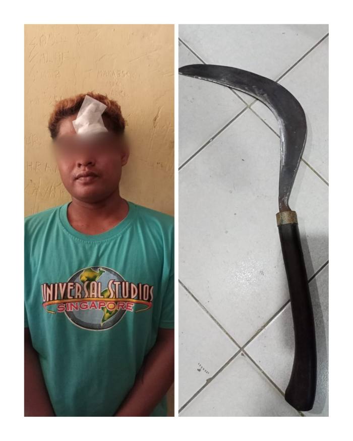 Nnamun tidak berapa lama kemudian tersangka datang lagi dengan membawa sajam langsung mengayunkan ke arah korban.