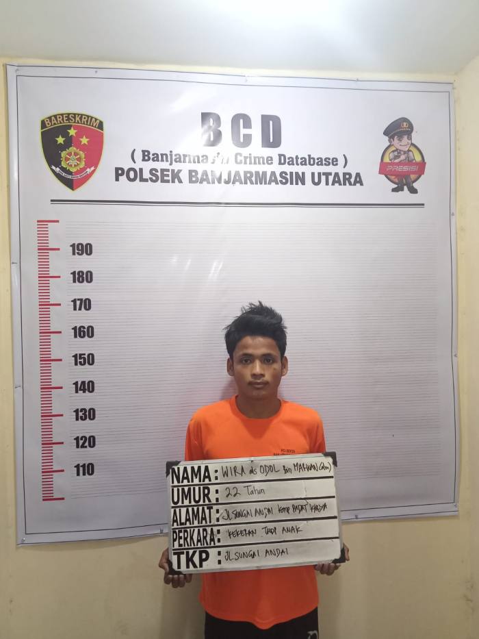Kapolsekta Banjarmasin Utara, Kompol Agus Sugianto melalui Kanit Reskrim, Iptu Sudirno, saat dikonfirmasi Senin (6/3/2023), membenarkan telah mengamankan tersangka dan dikenakan pasal 80 ayat (1) UU RI Nomor. 35 Tahun 2014 ttg Perubahan atas UU RI Nomor. 23 Tahun 2002 Jo Pasal 335 ayat (1) ke-1 KUHP
