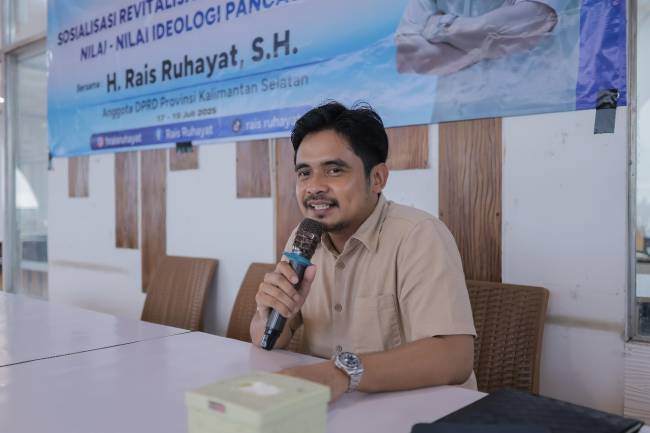 SuarIndonesia – Ketua Komisi I DPRD Provinsi Kalimantan Selatan, H. Rais Ruhayat, menegaskan kembali pentingnya Pancasila sebagai landasan berbangsa dan bernegara dalam sosialisasi wawasan kebangsaan di Handil Bakti, Kabupaten Barito Kuala, pada Kamis (17/7/2025).