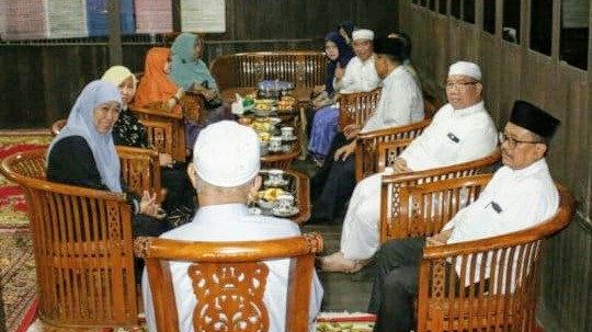 SuarIndonesia – Gubernur Jawa Timur Khofifah Indar Parawansa beserta rombongan pejabat lainnya bersilaturahmi dengan ulama karismatik KH Asmuni atau lebih dikenal Guru Danau di Kecamatan Danau Panggang, Kabupaten Hulu Sungai Utara (HSU) Kalimantan Selatan pada, Sabtu (8/2) malam.