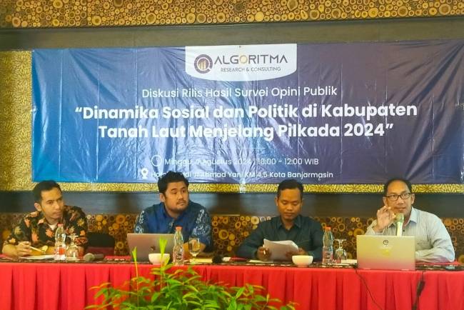 SuarIndonesia– Lembaga Riset dan Konsultansi Politik ALGORITMA merilis hasil survei sejumlah nama yang potensial bertarung di Pilkada Tanah Laut (Tala) 2024.