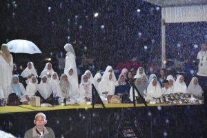 Hujan cukup lebat tak surutkan ribuan warga bersama-sama bersholawat Jum’at (10/1) malam.
