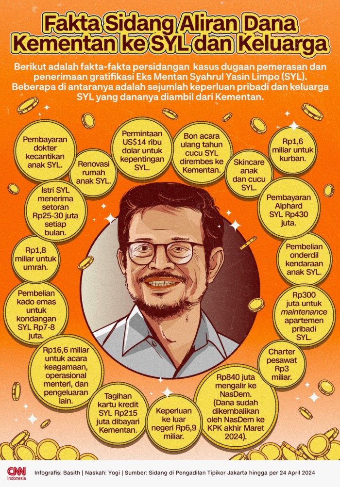 Selain itu, SYL disebut menggunakan uang diduga hasil memeras untuk kepentingan pribadi dan keluarganya, serta mengalirkan uang ke Partai NasDem. SYL juga menggunakan travel Suita dan Maktour untuk perjalanan ke luar negeri termasuk melaksanakan ibadah umrah.