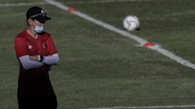 Pelatih Timnas Indonesia U-19, Shin Tae Yong, menyesali kegagalan Rizky Ridho Ramadhani dan kawan-kawan meraih kemenangan melawan Qatar.(Foto/CNNIndonesia)