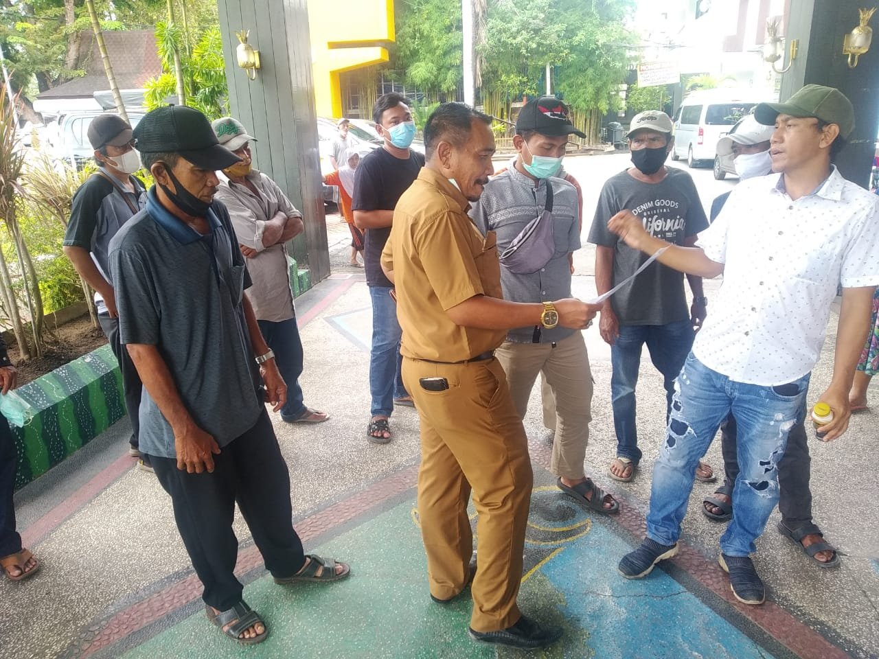 Tidak lama berselang, Kabid Kebersihan dan Pengelolaan Sampah DLH Kota Banjarmasin, Marzuki datang menemui para korban yang saat itu duduk di teras Balai Kota.