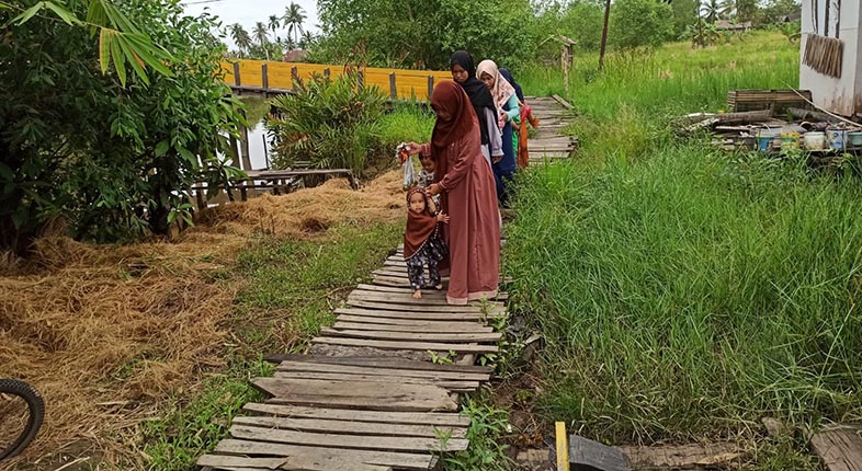Di sana hanya ada jalan setapak yang bisa dibilang masih serabutan. Beberapa hanya berupa titian kayu tua dan tumpukan jerami padi.